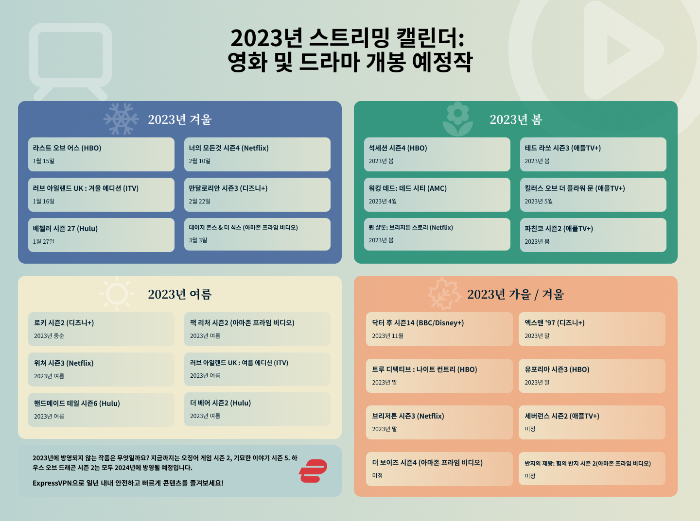 2023 스트리밍 캘린더: 인기 드라마 및 스포츠 경기 일정