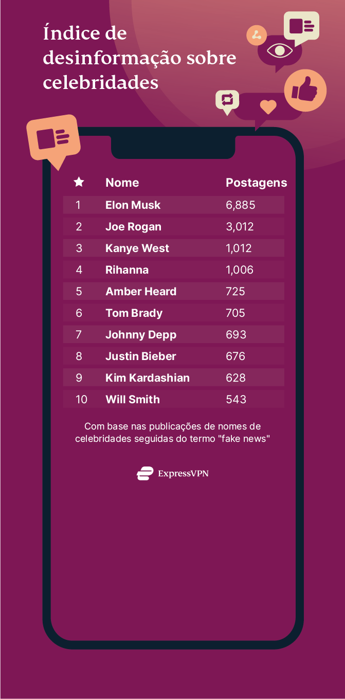 As 20 principais celebridades associadas à fake news em 2022
